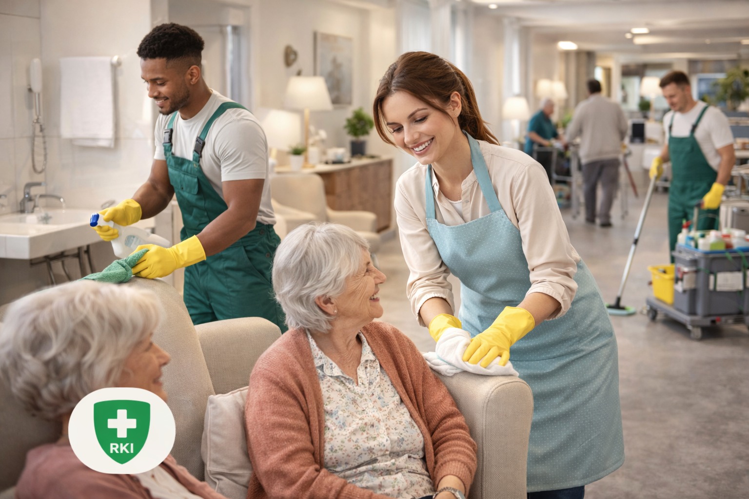 - Keimfrei Reinigung der Sanitär-und Pflegebereiche: Intensive Desinfektion von Badezimmer und Gemeinschaftsräume.